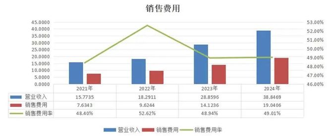 毛戈平4年销售费用19亿元,占营收比49%。毛戈平花在销售上的费用率水平并不算低,位居行业大第5(上美、丸美、贝泰妮、水羊)。