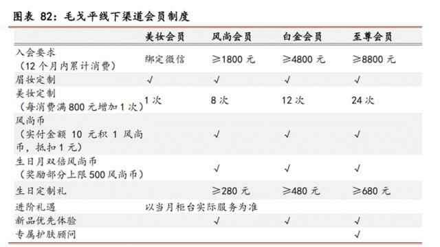 与其他美妆品牌会员积分抵扣现金的模式不同,毛戈平会员制度所包含的妆容定制成为复购率(31%)高于行业均值水平的核心原因,毛戈平自身线%)高于线%)也是一个有力证据。